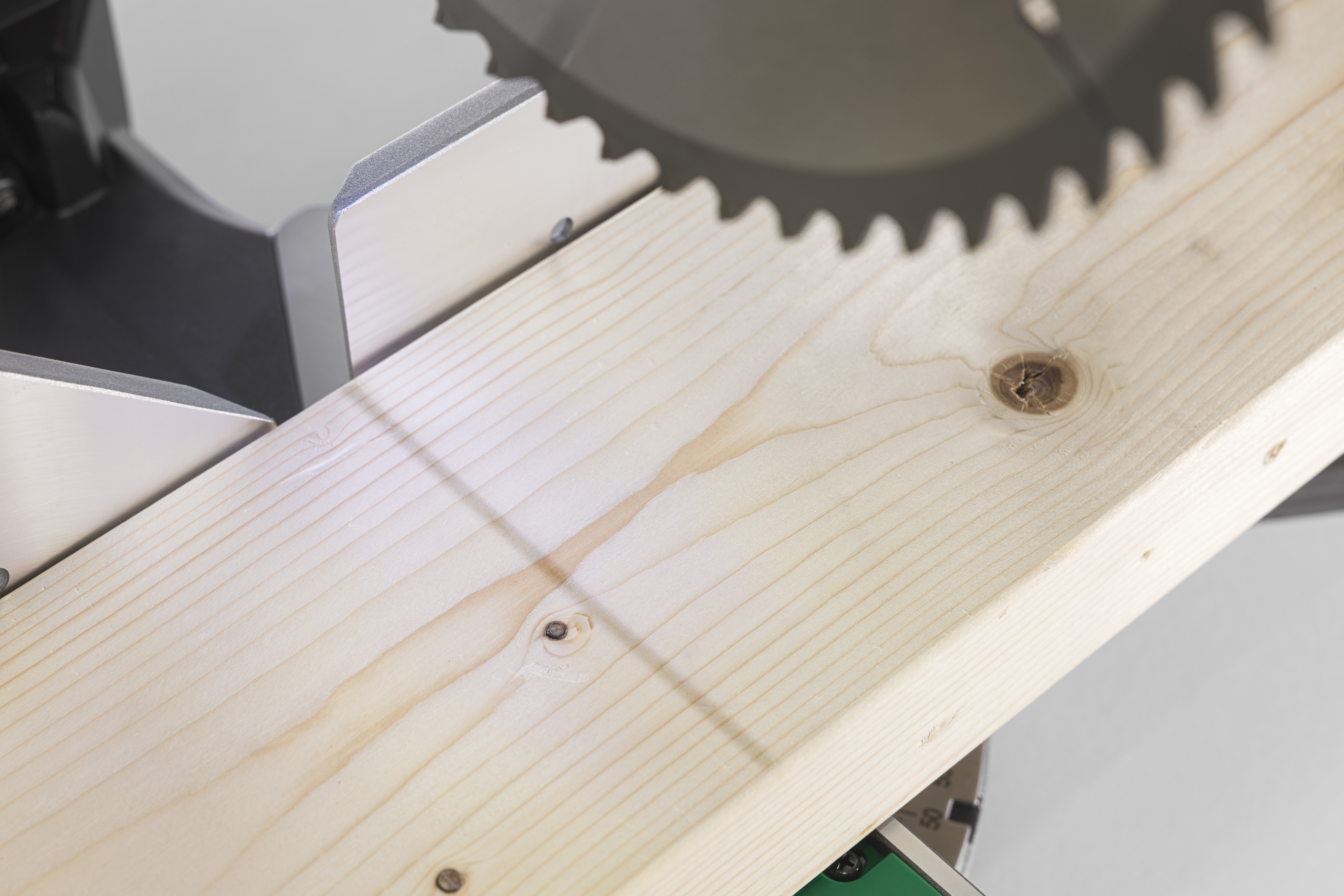 Utstyrt med mykstart og ny type integrert LED-lys - XACT CUT LED - som reflekterer skyggen av bladet på arbeidsstykket som en skjærelinje.
