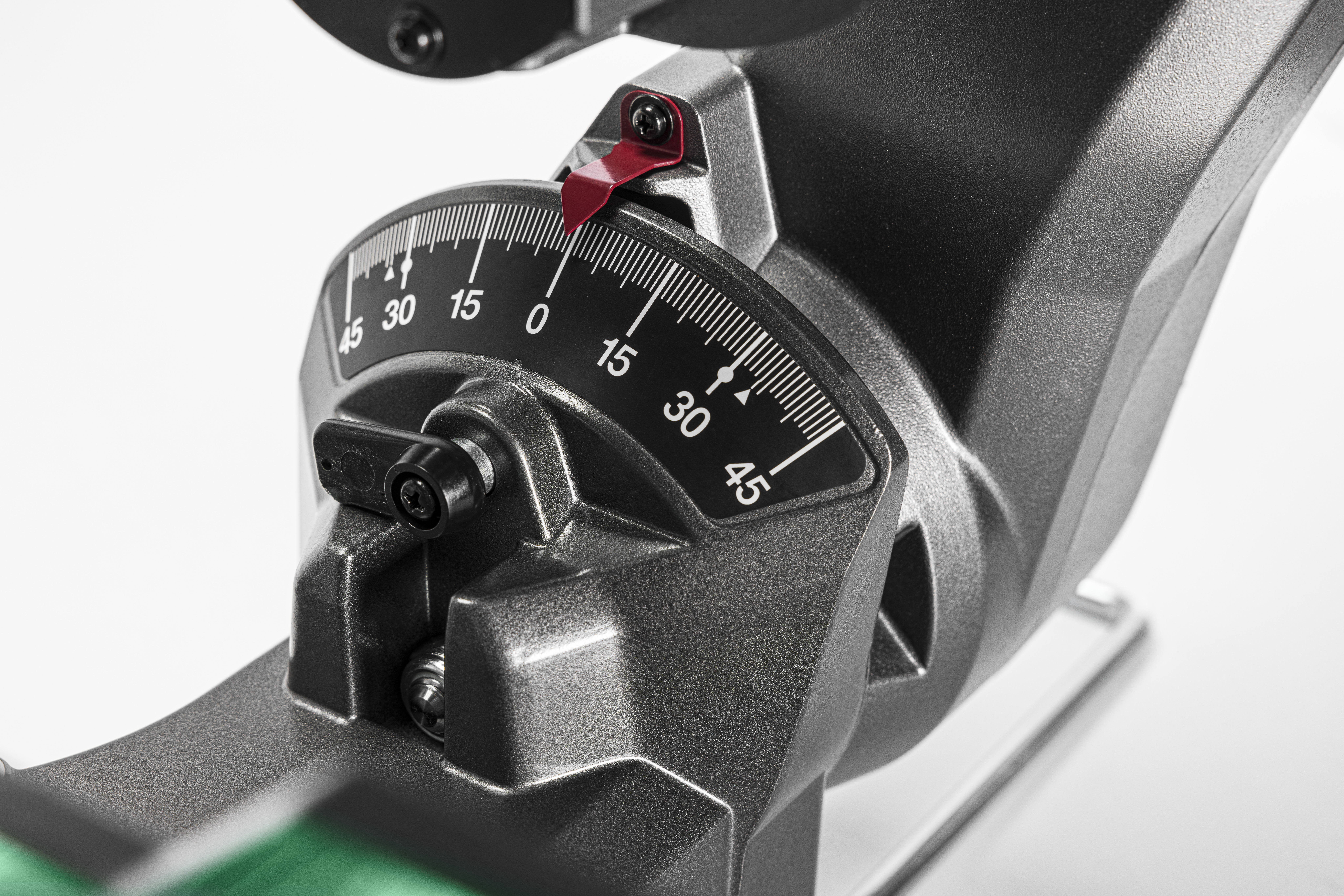 Enkel justerbar gjæringsskala med faste gjæringsposisjoner 0°, 15°, 22,5°, 31,6 og 45°.