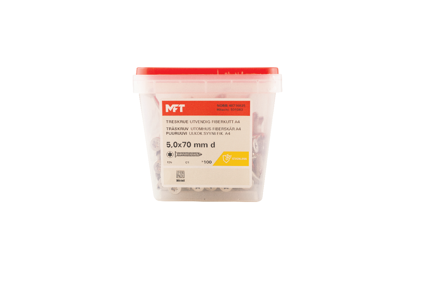 MFT Syrefaste treskruer A4 - kvalitet AISI-316, Korrosjonsklasse C5.