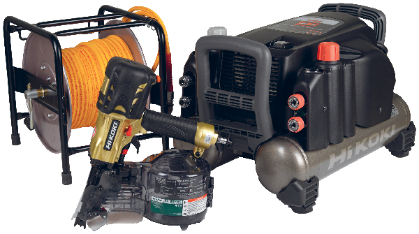 Pakken indeholder: • Højtrykskompressor EC1433H • Tromlesømpistol NV90HMC • Slangetromle 30 meter